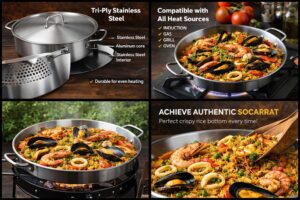 Cooking authentic Spanish paella at home is easier with the right pan. The Paelluxe Tri‑Ply Stainless Steel Paella Pan provides even heating, durability, and versatility. It is ideal for both beginner cooks and experienced chefs who want to create restaurant-quality dishes in their own kitchen.